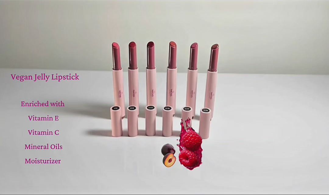 that’s why our signature Vegan Jelly Lipstick Collection is enriched with Vitamin E, Vitamin C, natural mineral oils, and moisturizing plant-based ingredients.